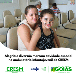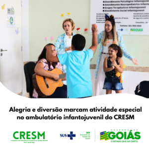 Na terceira semana de outubro, o ambulatório infantojuvenil do Complexo de Referência Estadual em Saúde Mental Prof. Jamil Issy – CRESM, unidade do Governo de Goiás, promoveu uma atividade especial em alusão ao Dia das Crianças. O momento, repleto de descontração e alegria, foi realizado pela equipe médica e multiprofissional, que preparou uma programação divertida e acolhedora para os pequenos pacientes.