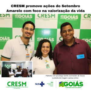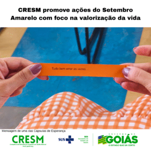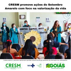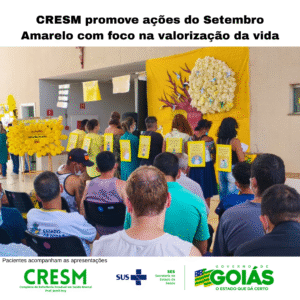 O Complexo de Referência Estadual em Saúde Mental Prof. Jamil Issy – CRESM, unidade do Governo de Goiás, realizou, entre os dias 24 e 26 de setembro, atividades em alusão à campanha Setembro Amarelo. As ações foram direcionadas a diferentes públicos e tiveram como propósito comum reforçar a valorização da vida e o cuidado com a saúde mental.