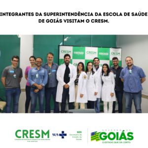 Os membros da Superintendência da Escola de Saúde de Goiás (SESG), realizaram um tour pela unidade, além de conheceram as instalações do CRESM, verificaram os ambientes que serão utilizados pelos alunos da turma de Residência Médica em Psiquiatria.